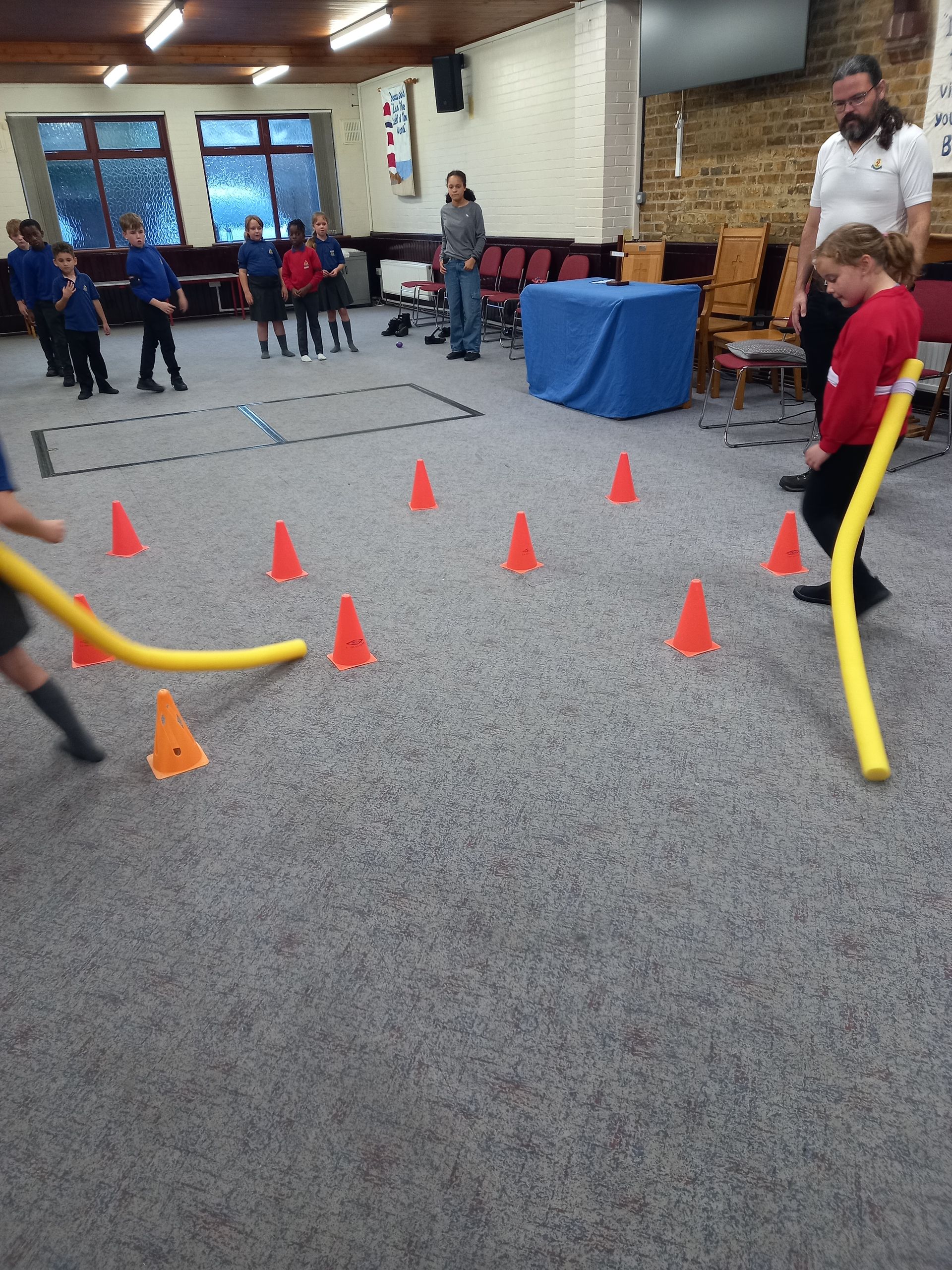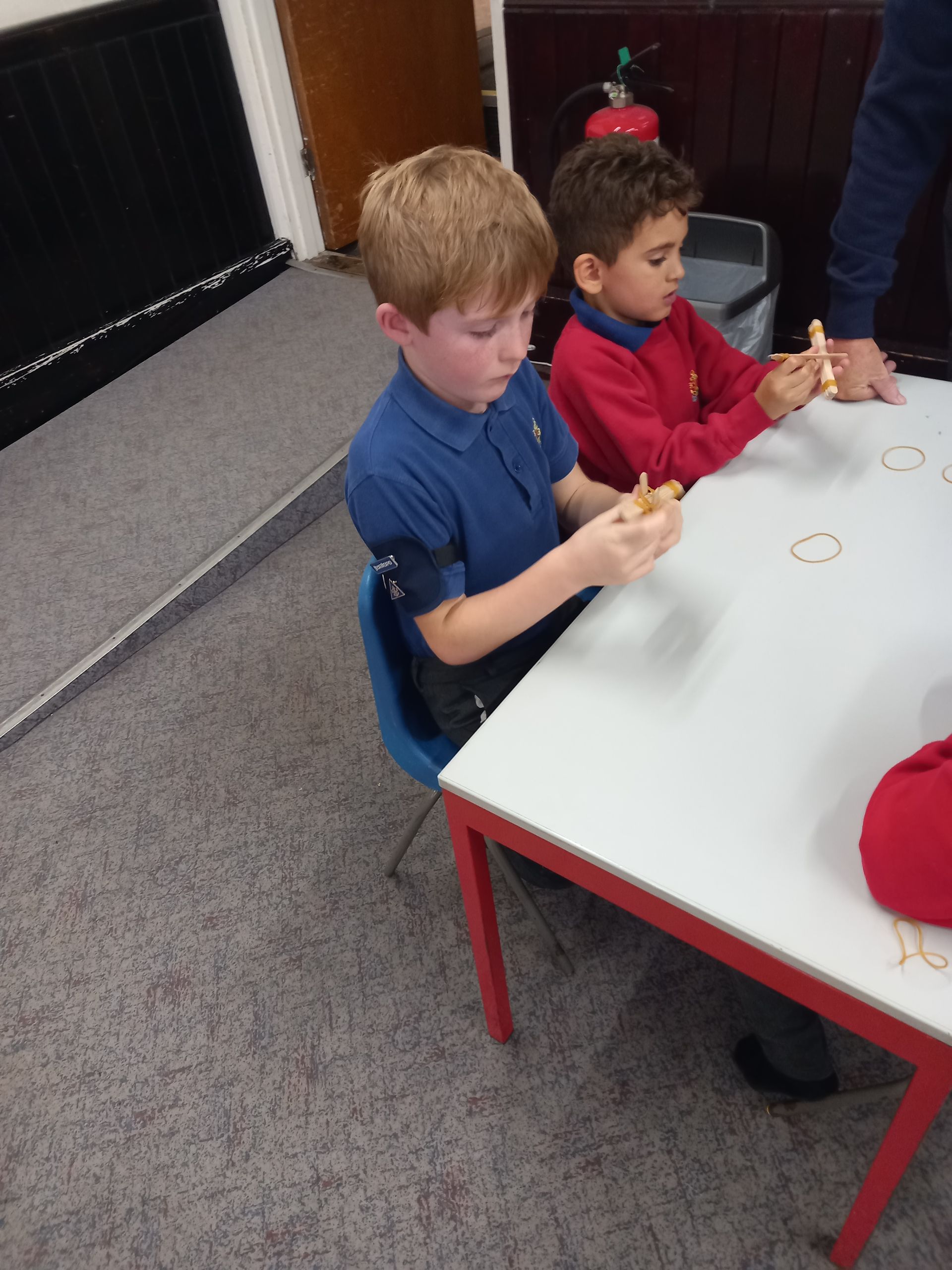 Tonight Anchors and Juniors were looking at different time periods. They played one on one hockey with the winner trying to guess the name of a Norse god from the clues given to them - they were actually very good at this. They played skittles trying to knock down the skittle with a time period relating to clues given. Finally they made a model of a trebuchet (a medieval catapult) using lolly sticks and rubber bands.