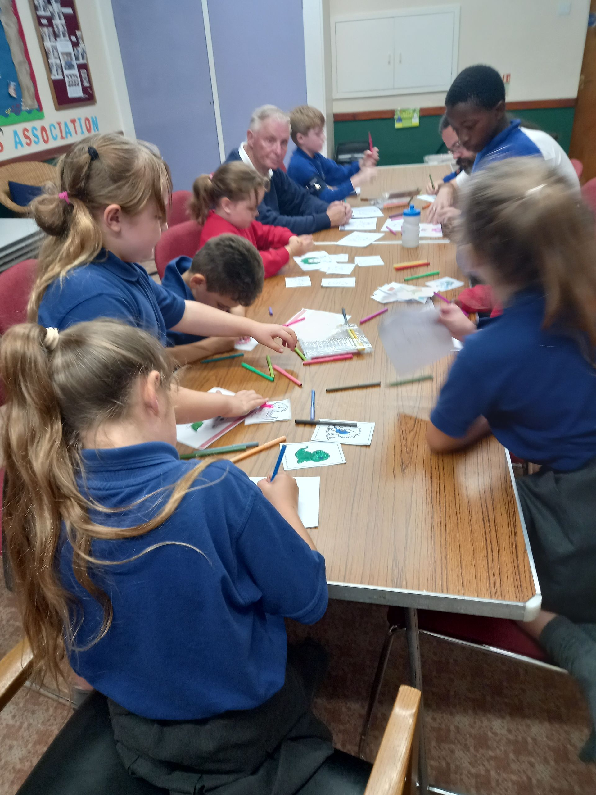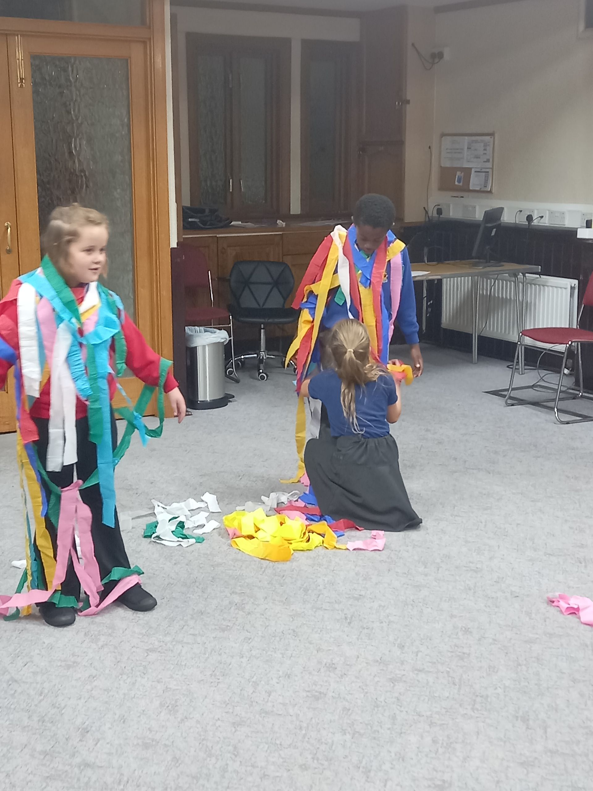 On Friday Anchors and Juniors were looking at St George. They played a game of George, George, Dragon ( a version of duck, duck, goose,). Coloured in pictures of dragons, rode a horse (broom) and with their lance (another broom) had to kill the dragon (a cushion suspended from the ceiling by rope) and played sleeping dragons.