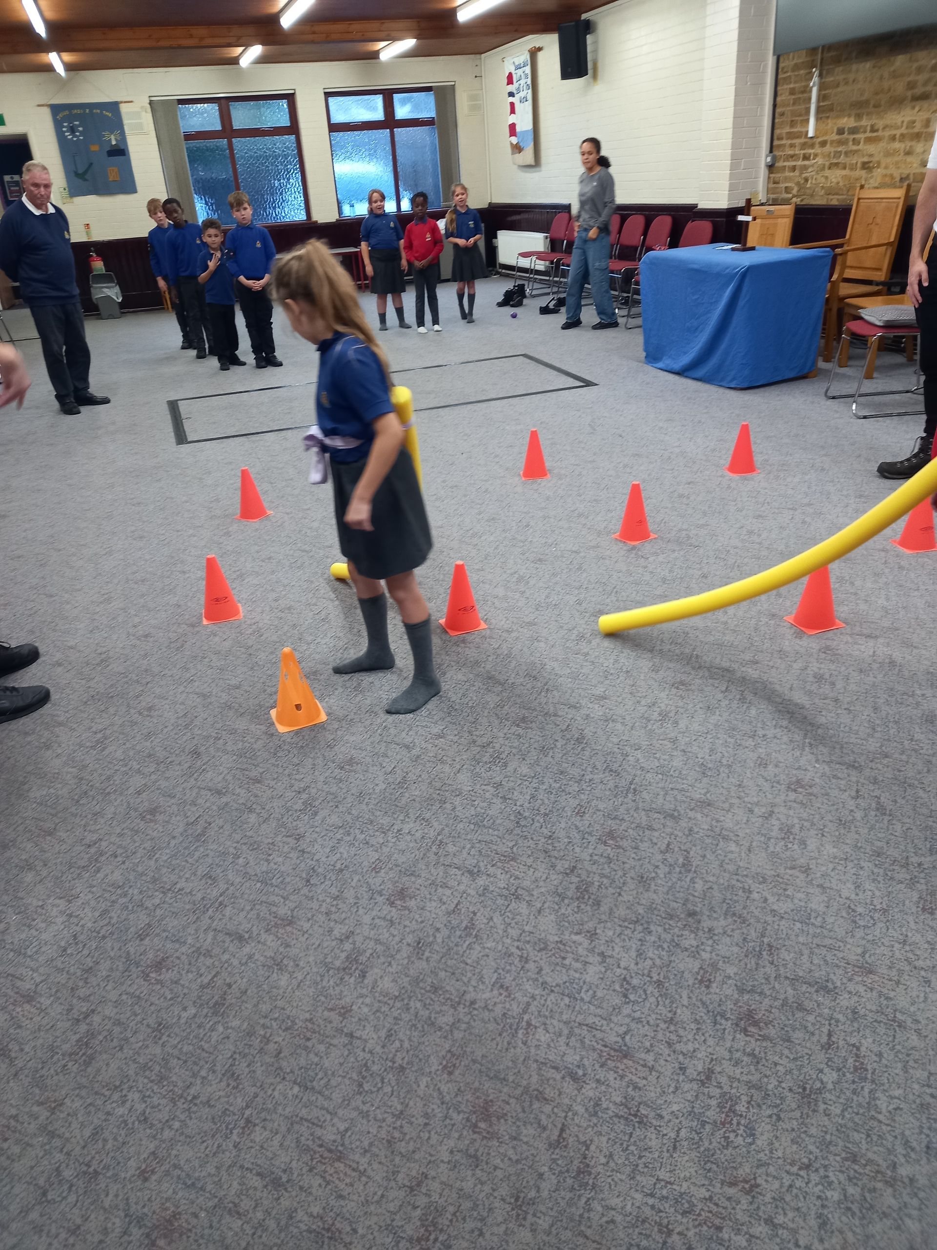 Tonight our Anchors and Juniors looked at disability, how hard it is for disabled people and what can be done to help them. They started by looking at our premises to see what has been installed for disabled people and seeing if there is any way we could improve the building. After that they took turns at being blindfolded and were directed around a set of cones with verbal instructions from one of the other youngsters. They also had a go at lip reading to see how hard it would be to communicate if they were deaf. Finally they had to translate some words written in braille and work out the link to a bible passage.