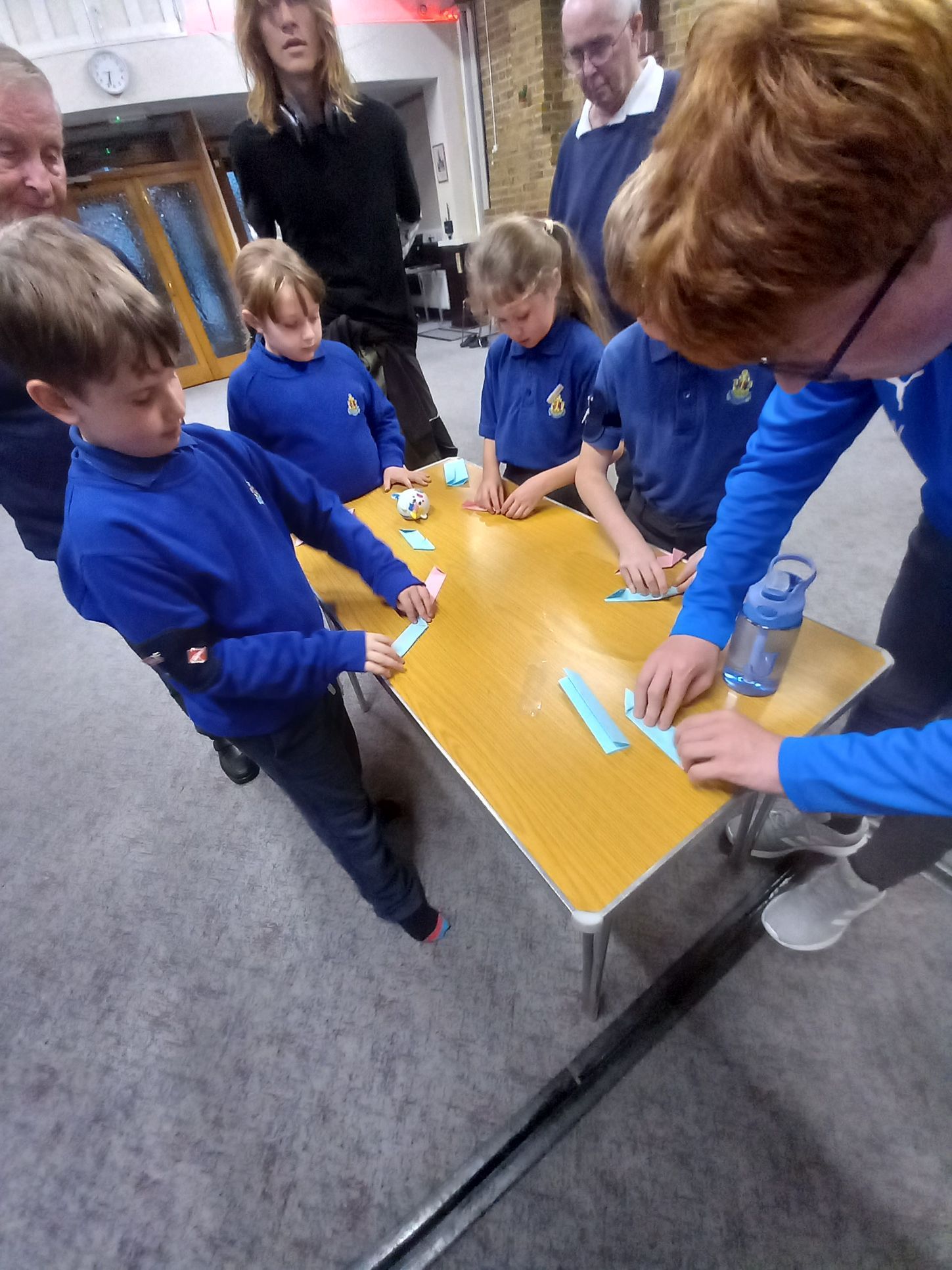 Tonight our Anchors and Juniors were looking at World War II. We started by trying to crack a Pigpen code after talking about why secret codes were needed. They then looked at evacuation, what it was and what effects we thought it had on both the children and the parents. We then had a game where they had to get across an obstacle course and collect items that an evacuated child would need to take with them. The youngsters also made paper air planes which we flew to see whose would fly the furthest. We finished the evening playing Battle of Britain where the youngsters were either Hurricanes or Spitfires and had to run around the room with their arms outstretched until a leader managed to hit their legs with a soft ball.
